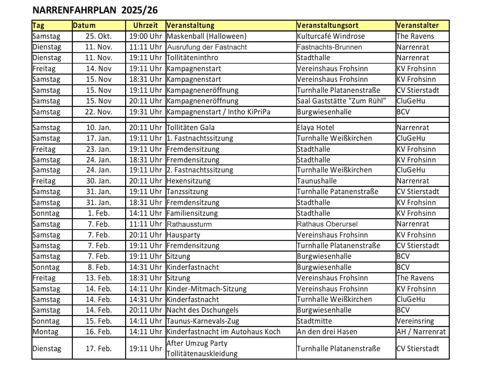 Alle Veranstaltungender Oberurseler Karnevalvereine